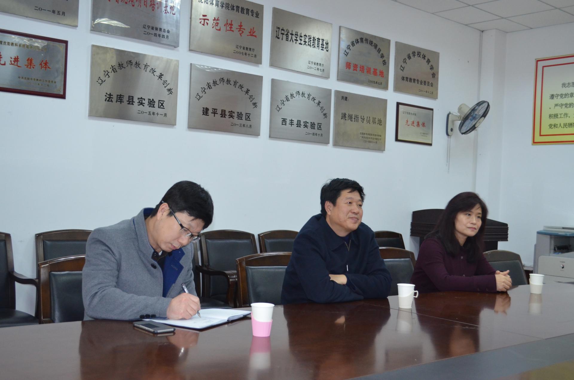 2018年3月13日,苏家屯区教育局局长郭志美、副局长刘红丽、体卫艺科科长张杰铮一行到36365最新线路检测中心,针对大学生校外实践教育基地建设和学生实习实训工作的开展与我院领导进行交流,36365最新线路检测中心领导班子参加了座谈。