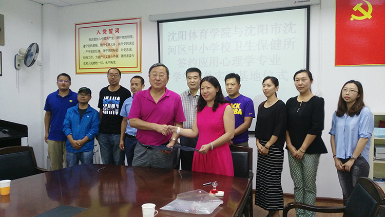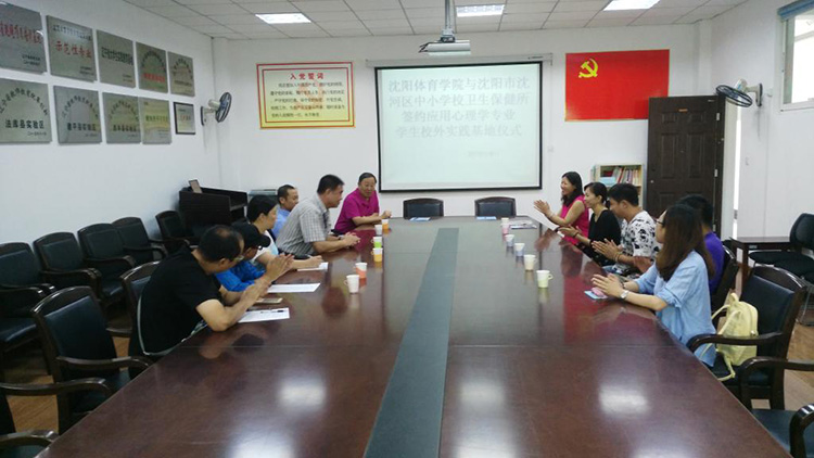 2016年8月29日上午10点,36365最新线路检测中心与沈阳市沈河区中小学校卫生保健所就学生校外实习基地建设达成共识,在36365最新线路检测中心田径馆二楼会议室举行了签约及授牌仪式。副院长李杰凯教授,36365最新线路检测中心院长王新坤教授及班子成员,心理学教研室主任孙拥军博士、副主任段再复老师,沈阳市沈河区中小学校卫生保健所所长刘洁、后勤主任崔明远、心理健康教育学科教研员应丽丽以及辽宁日报记着朱才威、沈阳日报记着马骋出席了签约仪式。