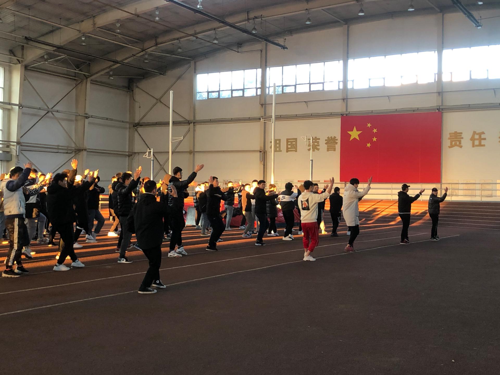术科部分培训形式为利用早操时间,以班级为单位进行太极拳、广播体操、健美操、基本口令、花样跳绳等项目培训,由相关项目专任教师带领研究生助教以班级为单位逐一指导。
