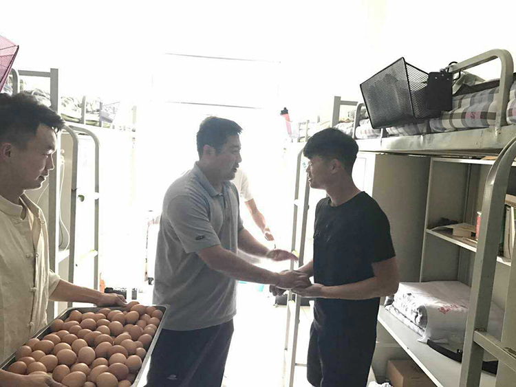 2017年5月29日,我国传统节日端午节即将到来之际,36365最新线路检测中心团委书记姜少英,辅导员周琳、李峰等老师代表学院领导到学生公寓慰问端午节我院留校学生,并为同学们带来了热腾腾的粽子、鸡蛋等慰问品,亲切的询问了大家假期生活、学习状况,并致以了节日的问候。