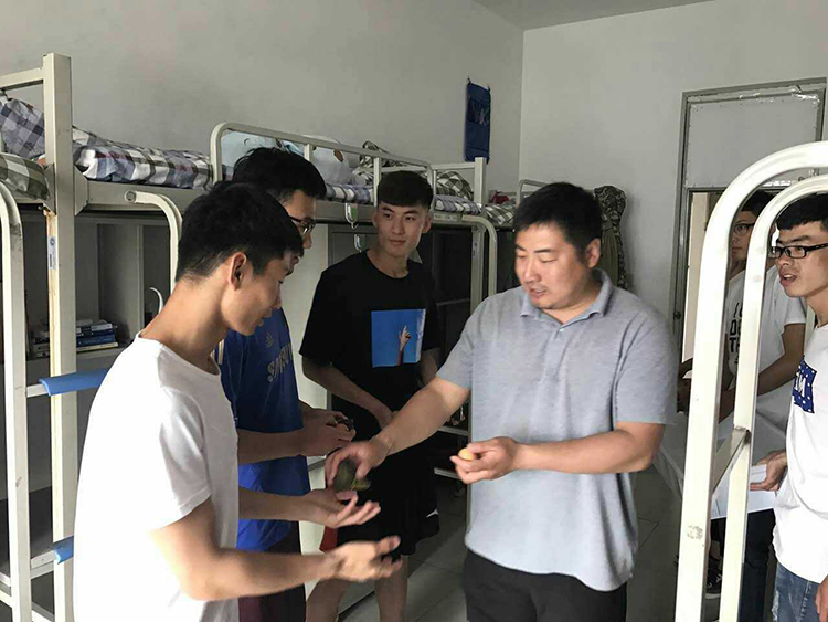体育教育专业2016级14班张旭泽同学高兴的拿着粽子和茶叶蛋表示,感谢学院领导老师对留校同学们的祝福和关怀,很感动学院安排的如此细致丰富,让我们感觉到了家的温暖。