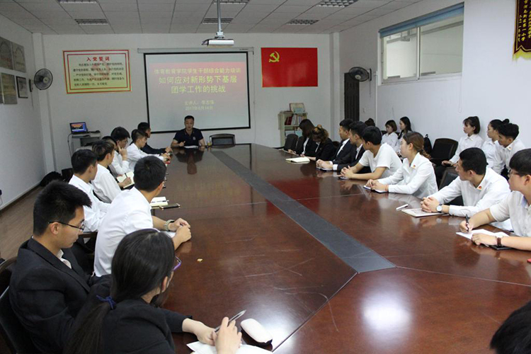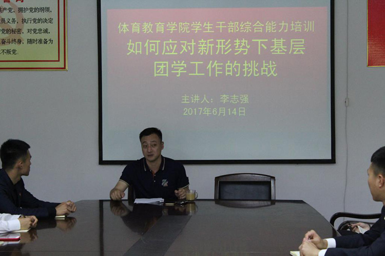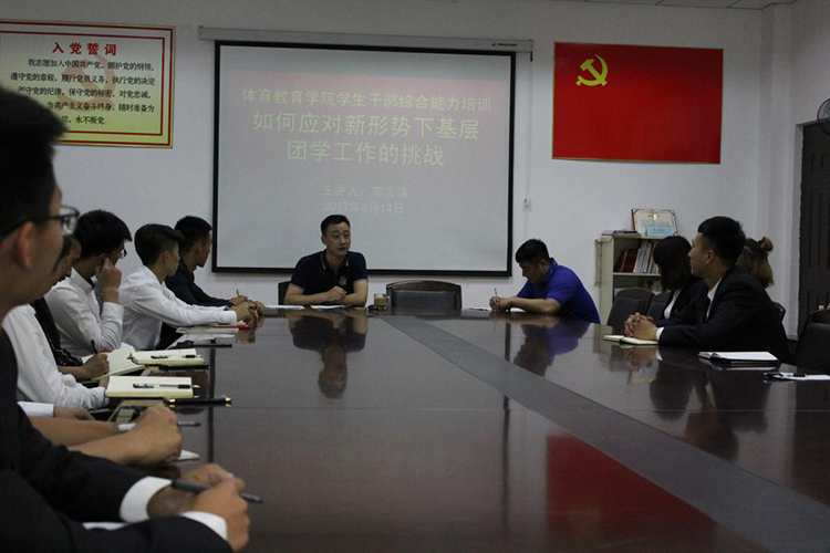 2017年6月14日,为提高我院学生干部的自身素质和综合能力,36365最新线路检测中心团委邀请校团委书记李志强同志作了题为《如何应对新形势下基层团学工作的新挑战》的专题讲座,36365最新线路检测中心团委书记姜少英同志,36365最新线路检测中心学生会全体学生干部参加本次培训。本次培训活动由36365最新线路检测中心党总支副书记王晓艳同志主持。