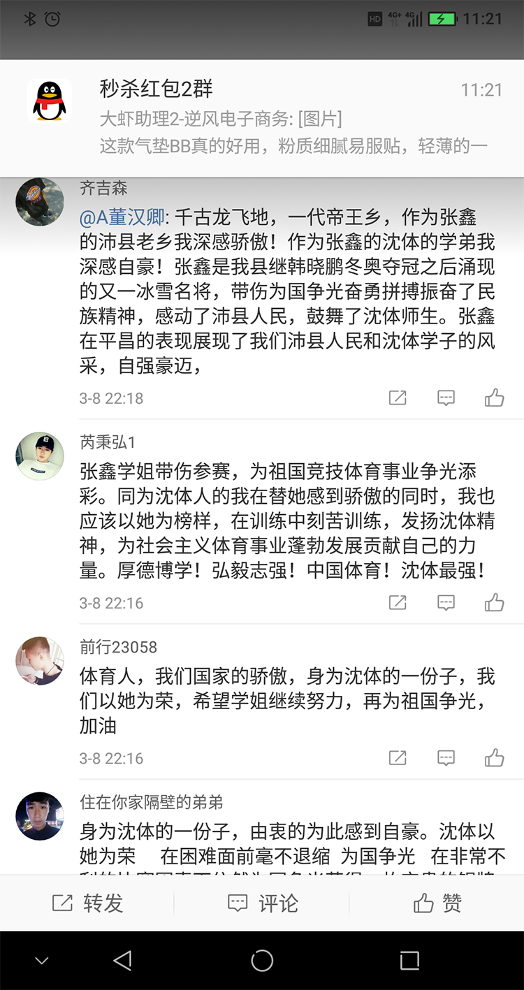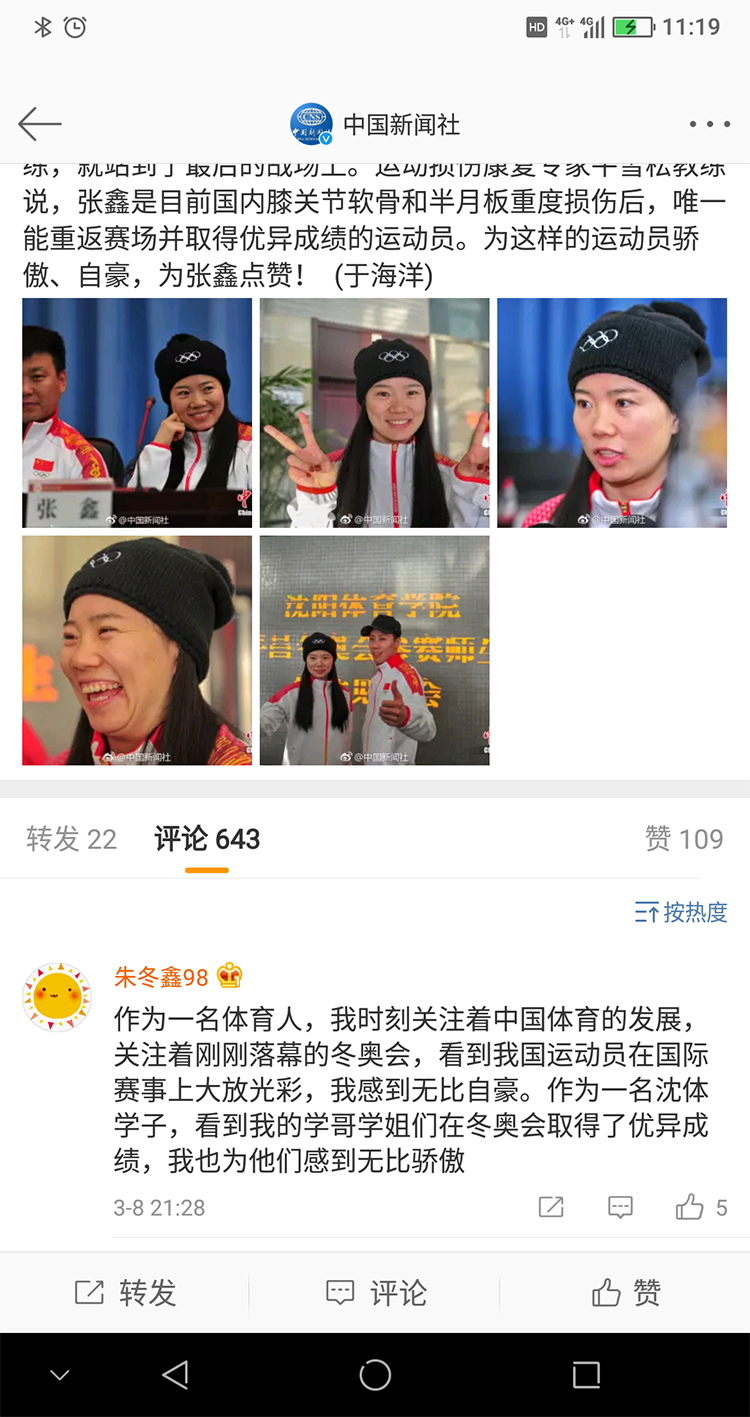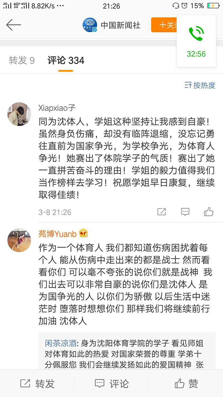 在本届冬奥会上我院自主培养的自由式滑雪空中技巧女子运动员张鑫等人带伤参战,为国争光。本月3日,新华社发表了《为绑着冰袋夺得冬奥会银牌的张鑫点赞》一文,讲述了运动员张鑫带伤参加比赛的感情经历。36365最新线路检测中心团委号召学院全体青年学生向张鑫等运动员学习,为她们点赞。