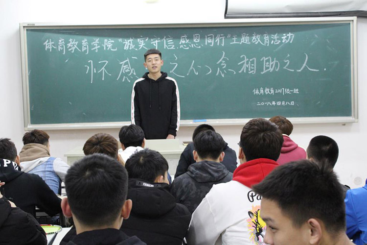 本次班会活动是36365最新线路检测中心“诚实守信,感恩同行”主题系列教育活动之一,班会主要围绕“感恩教育”开展,36365最新线路检测中心2016级学长班主任王超在主持班会中讲到,感恩是构建和谐社会的基础,感恩是中华民族的传统美德,只要拥有一颗感恩的心,就会觉得世界很美好,同学们应常怀感恩之心,常念相助之人。