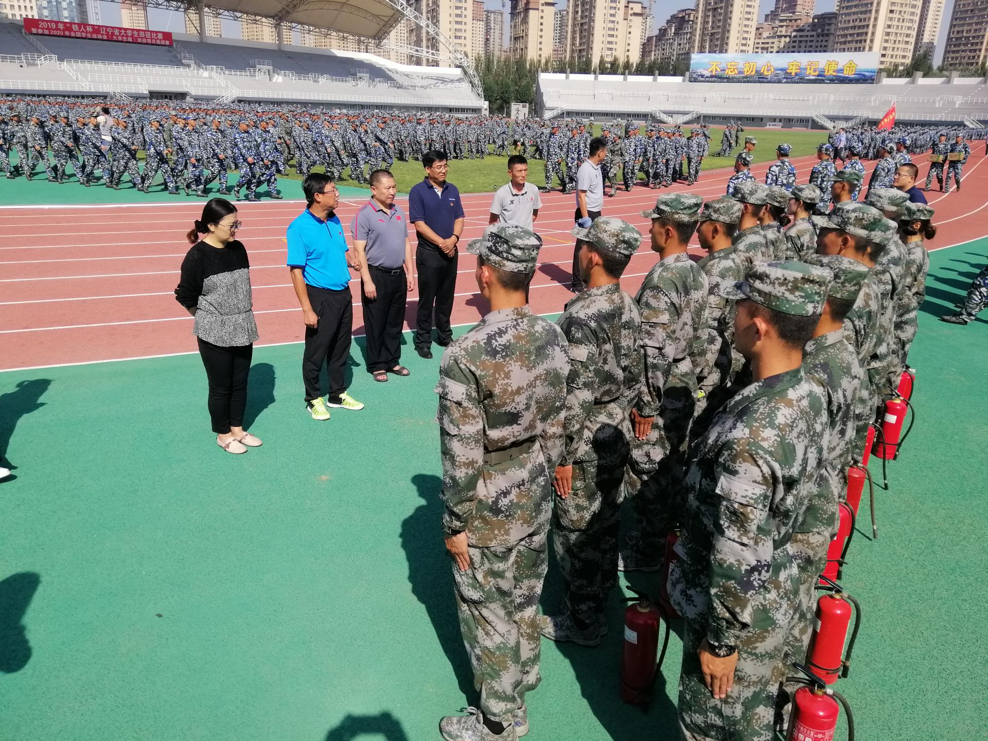 2019年9月2日,36365最新线路检测中心院长郝庆威同志、党总支书记范林海同志、党总支副书记王晓艳同志、副院长李成梁同志来到我院2019级新生军训场地看望慰问全体军训教官,送上师生诚挚的问候。院办公室主任李丁皓同志,团委书记姜少英同志、相关年级辅导员等一起陪同慰问。
