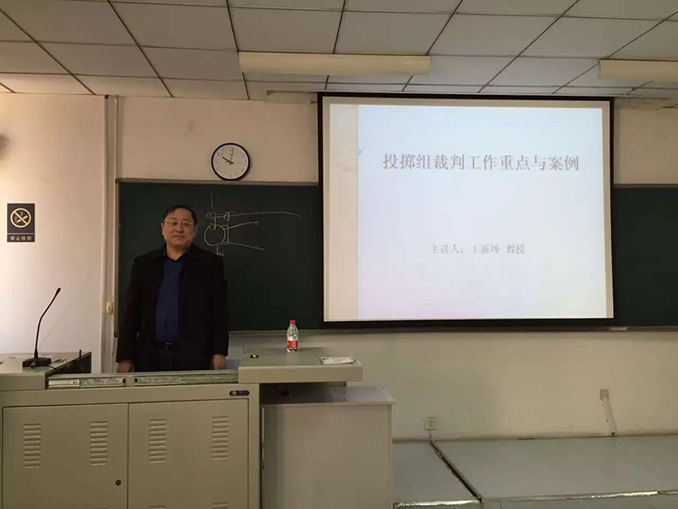 应天津市田径协会邀请,3月13日上午,我院田径国际级裁判王新坤教授为该市田协举办的田径裁判骨干业务培训班学员进行了《田投掷组裁判工作重点与案例》专题讲座,并同学员进行了关于田径裁判业务相关知识的交流。