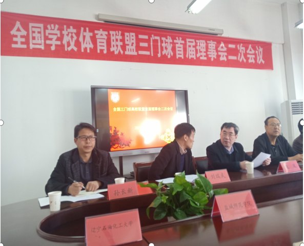 高校三门球联盟首届理事会第二次会议于2019年3月22日-24日在江苏盐城师范学院召开,首届理事会主席、副主席、秘书长、副秘书长及常务理事以及16所高校理事单位的部分三门球专业教练员参加会议。我院孙长新老师担任首届理事会秘书长并主持会议,本次会议重点研讨了三门球规则的完善、三门球运动开展的瓶颈与突破以及三门球赛事方案等问题,为新兴三门球运动在高校乃基层中小学后续发展提供了发展策略,推动了三门球运动再上一个新台阶。本次会议所提供的发展思路与发展理念也为36365最新线路检测中心36365最新线路检测中心教学改革实验区苏家屯区中小学特色三门球项目的进展提供了很有价值的借鉴。